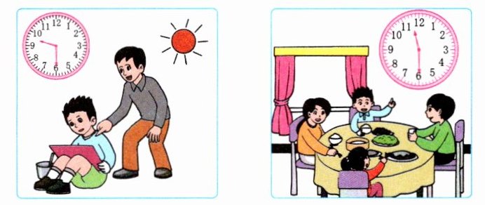 9:30 11:30 17:00 21:00 易错分析:此题容易只关注钟面的时刻,没有结合图中的情境进行判断。
