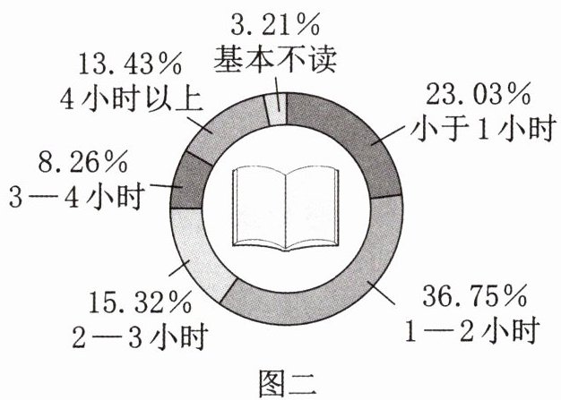 (1)选 C。“博学而笃志,切问而近思,仁在其中矣。”“博学”即广泛学习,鼓励少年多读书以获取丰富知识,与“少年正是读书时”的活动主题紧密相关,适合布置在活动现场。 (2)示例:大部分的学生不喜欢阅读名著;每周课外阅读 4 小时以上的学生很少,不到两成。 (3)示例一:我不认同这一观点。在当今时代,只埋头读圣贤书,不关注外界,会使我们视野狭窄。比如科技发展日新月异,若不闻窗外事,就无法了解新的科技成果,不能将其运用到学习生活中。而且,了解社会热点事件,能增强我们的社会责任感,更好地为社会作贡献。所以,我们既要读好书,也要关心窗外事。 示例二:我认同这一观点。圣贤书中蕴含着丰富的智慧和道理,深入研读能让我们提升个人修养和知识水平。我们全身心投入经典书籍的学习,能更专注地汲取知识,像古代的大儒们,通过一心苦读,成为一代宗师。只有先把圣贤书读好,打好基础,日后再去关注外界,才能更好地理解和应对。