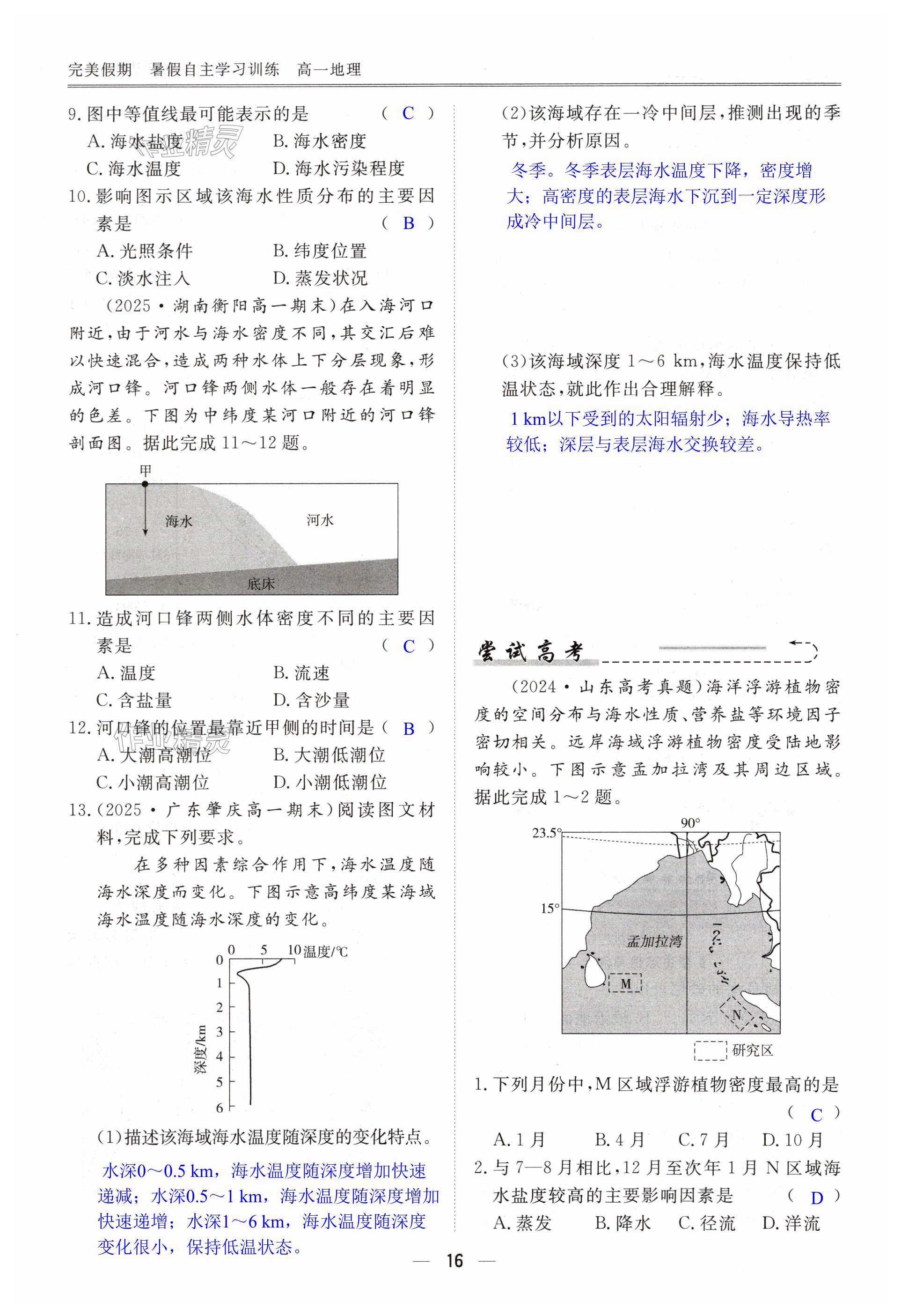 注:目前有些书本章节名称可能整理的还不是很完善,但都是按照顺序排列的,请同学们按照顺序仔细查找。练习册 2025年完美假期暑假自主学习训练高一地理通用版 答案主要是用来给同学们做完题方便对答案用的,请勿直接抄袭。