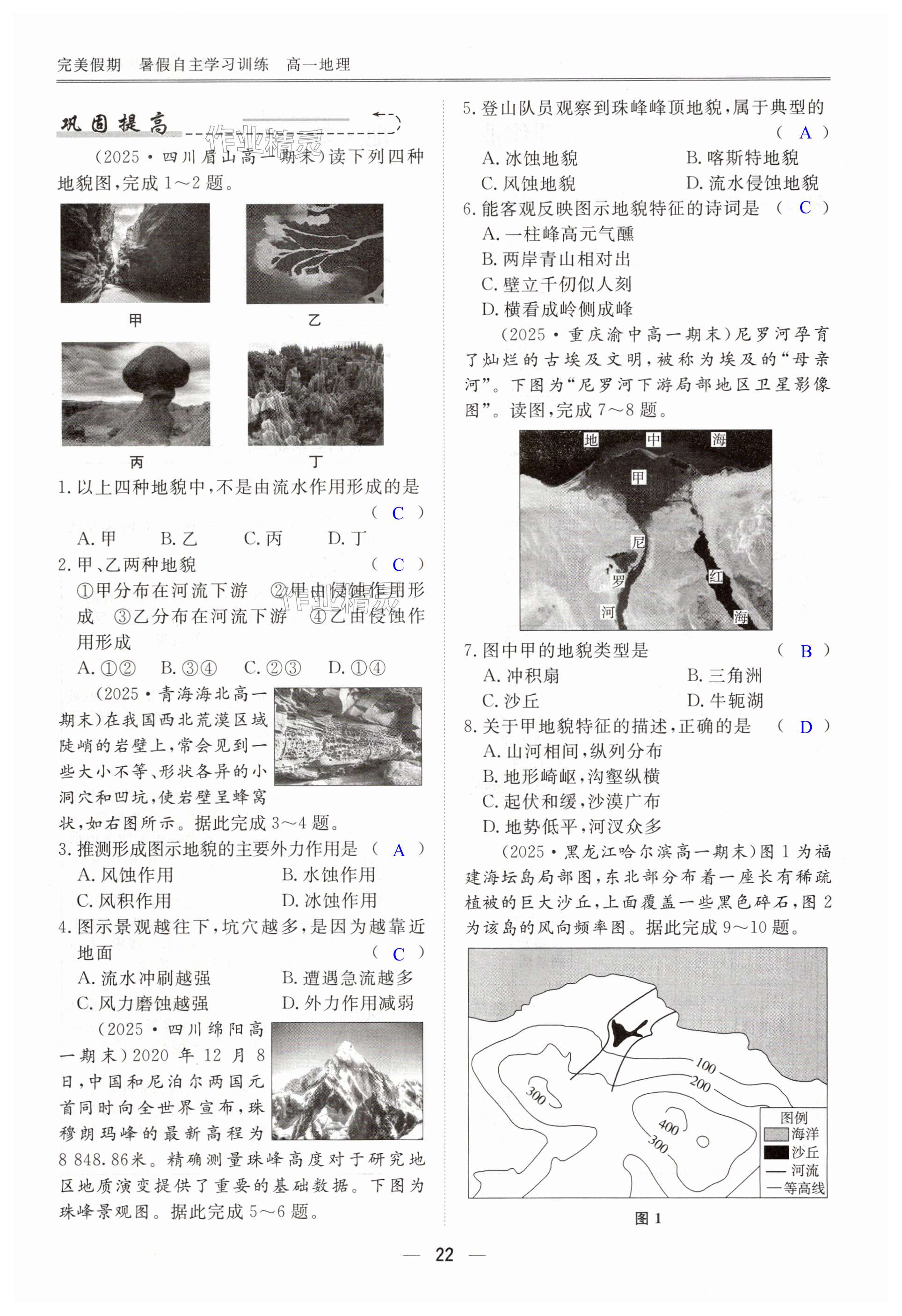 注:目前有些书本章节名称可能整理的还不是很完善,但都是按照顺序排列的,请同学们按照顺序仔细查找。练习册 2025年完美假期暑假自主学习训练高一地理通用版 答案主要是用来给同学们做完题方便对答案用的,请勿直接抄袭。
