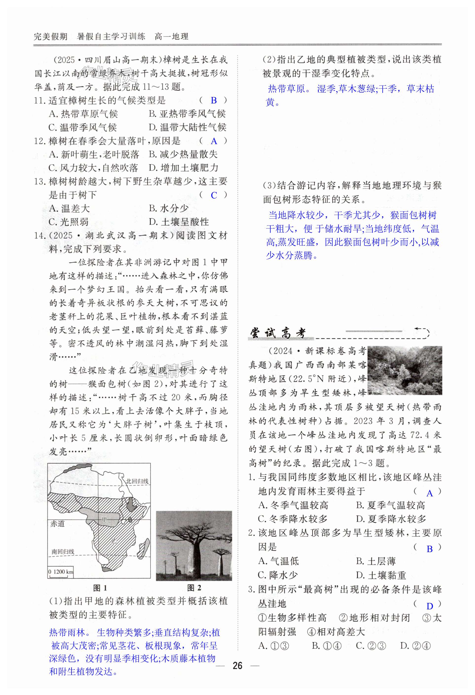 注:目前有些书本章节名称可能整理的还不是很完善,但都是按照顺序排列的,请同学们按照顺序仔细查找。练习册 2025年完美假期暑假自主学习训练高一地理通用版 答案主要是用来给同学们做完题方便对答案用的,请勿直接抄袭。