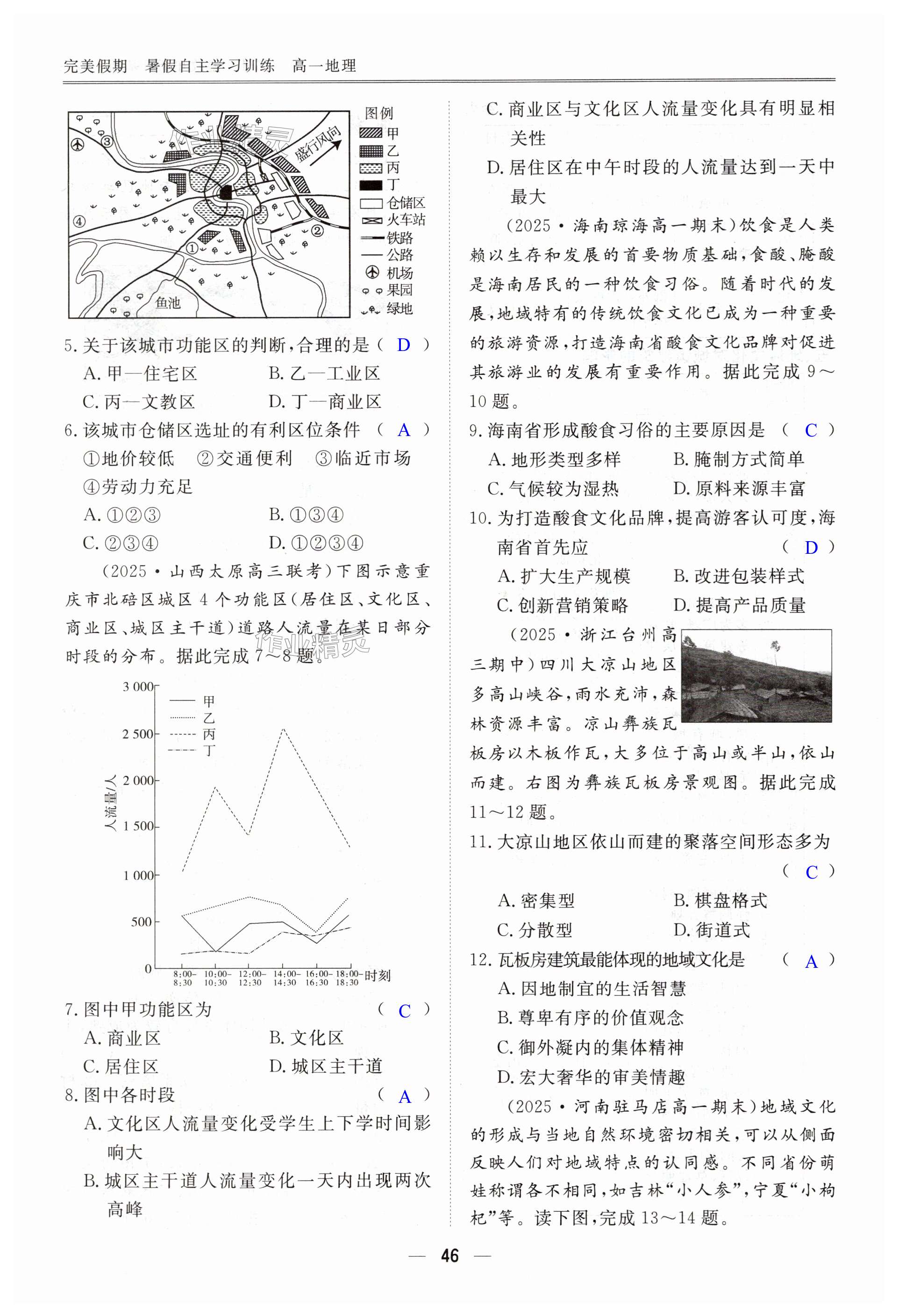 注:目前有些书本章节名称可能整理的还不是很完善,但都是按照顺序排列的,请同学们按照顺序仔细查找。练习册 2025年完美假期暑假自主学习训练高一地理通用版 答案主要是用来给同学们做完题方便对答案用的,请勿直接抄袭。