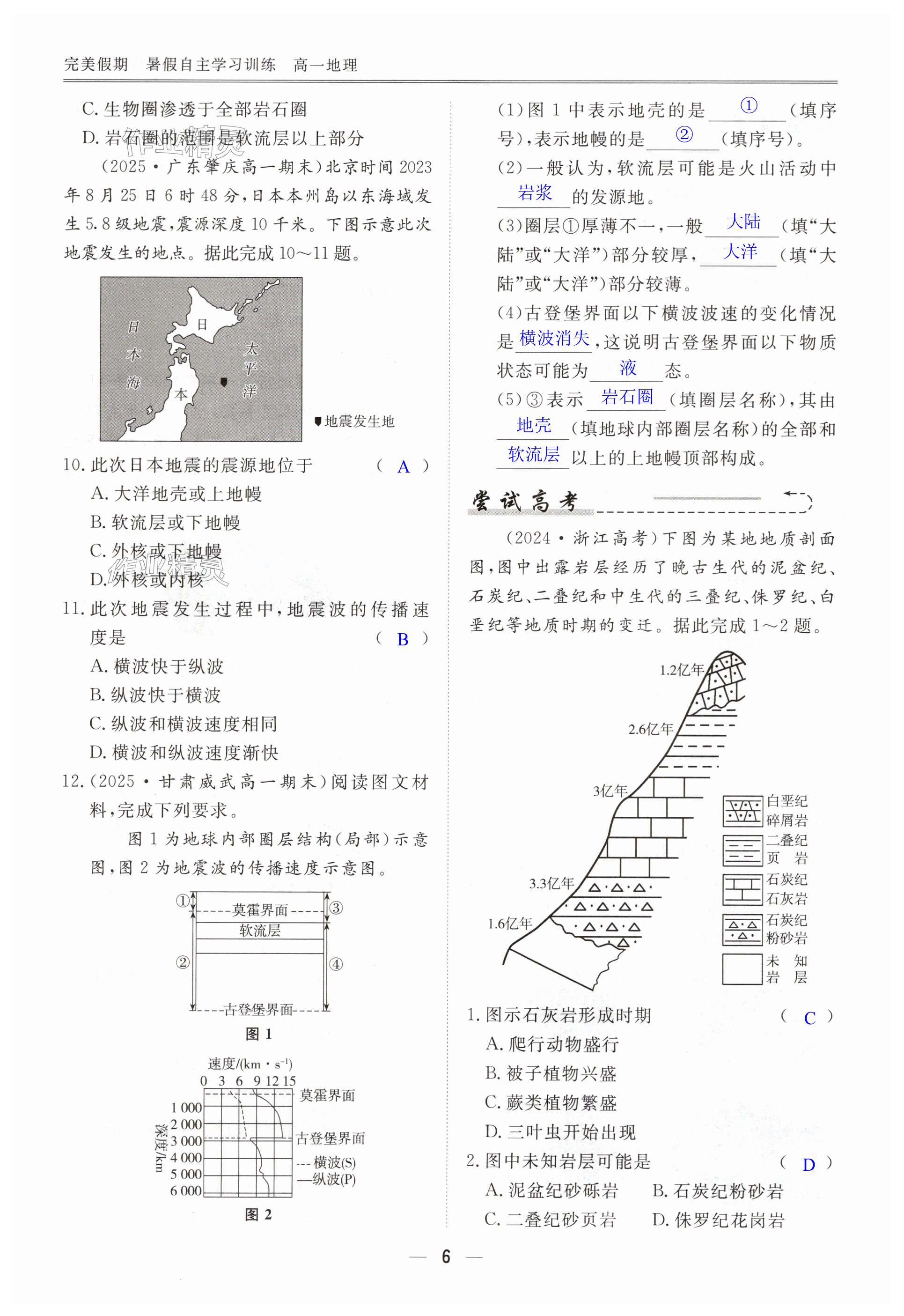 注:目前有些书本章节名称可能整理的还不是很完善,但都是按照顺序排列的,请同学们按照顺序仔细查找。练习册 2025年完美假期暑假自主学习训练高一地理通用版 答案主要是用来给同学们做完题方便对答案用的,请勿直接抄袭。