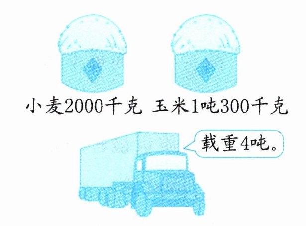 解:本题可先将小麦和玉米的质量单位统一换算成吨,再计算出小麦和玉米的总质量,最后与卡车的载重进行比较。