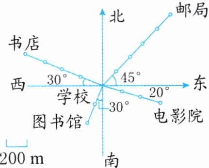 )2. 如果图上1cm表示实际20m,那么教学楼到食堂80m,图上应画4cm。(