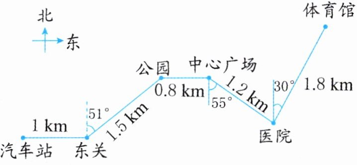 (2)南,$35^{\circ}$,$1.2$,北,东,$30^{\circ}$,$1.8$