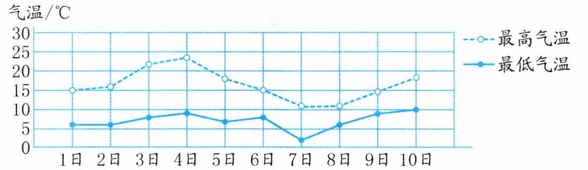 6. 下面是某地5月份1日~10日每天最高气温和最低气温的情况统计图。
