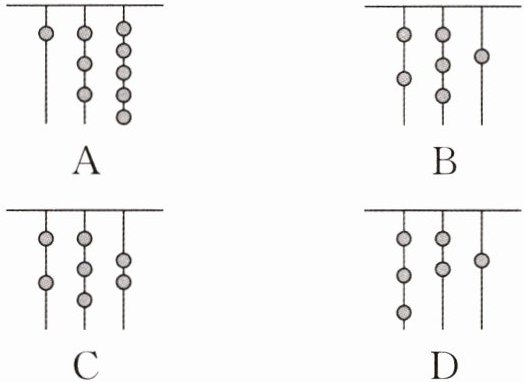12. (新考向·数学文化)(2024·湖州南浔期末)我国古代《易经》一书中记载了一种“结绳计数”的方法:一女子在从右到左依次排列的绳子上打结,满七则向左进一.下列图示表示数 162 的是(