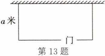 13. (易错题)(2025·绍兴新昌期末)如图是一面墙与篱笆围成的长方形园子,园子的宽为$a$米,篱笆的总长度为$b$米,门的宽度为 1 米,则园子的长是 ______ 米(用含$a$,$b$的代数式表示).