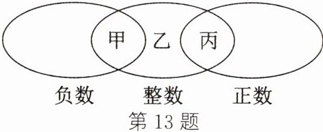 13. 如图所示的圈分别表示负数、整数和正数,其中有甲、乙、丙三个部分,则关于这三个部分的数的个数,下列说法正确的是(