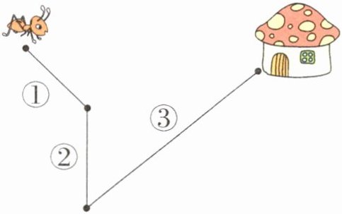 2. 如图是一只蚂蚁回家爬过的路线图,在图上量一量。