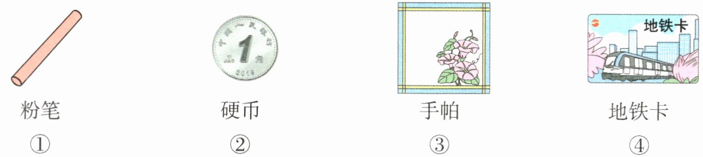 ( )的长度或边长接近1分米,( )的厚度接近1毫米。(填序号)