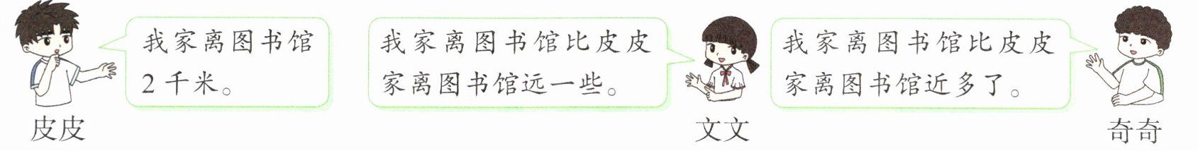 奇奇家离图书馆有多远?画“○”。