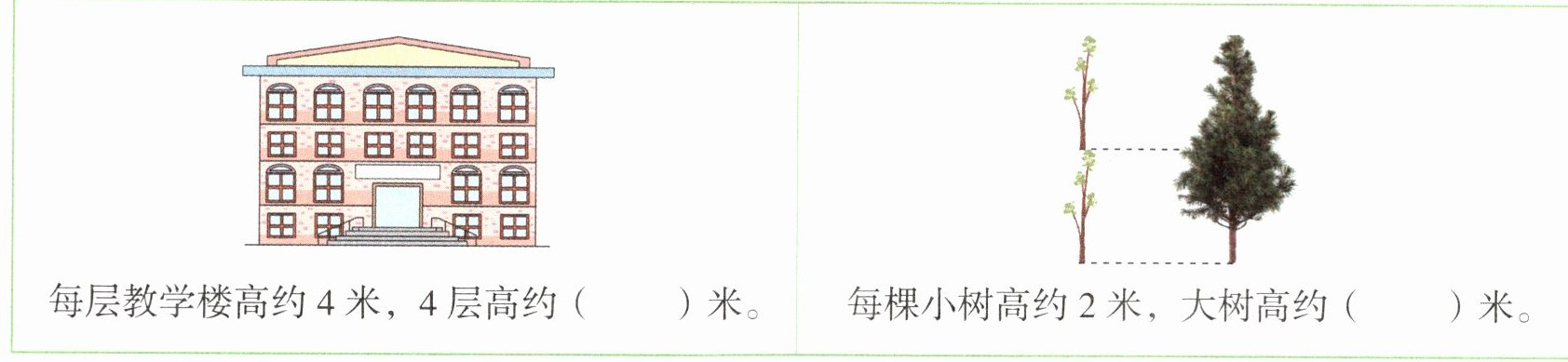 每棵小树高约2米,大树高约( )米。