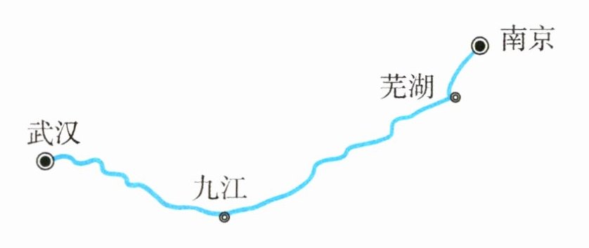 (3)一艘客轮从武汉出发,沿航线已经航行了约560千米,在图中用“▲”标出客轮的大致位置。