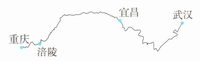 (3)一艘游轮从重庆出发,沿航线航行了约1000千米,在图中标出游轮的大致位置。