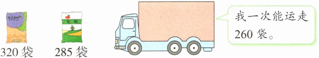 3.320+285=605(袋)260+260+260=780(袋) 605<780至少3次能全部运完。