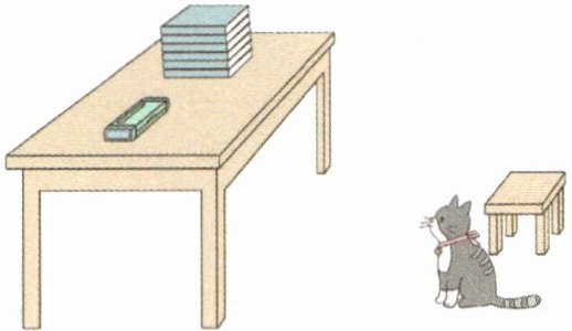 1. 桌子上放着一些学习用品,小猫好奇地想看看究竟。