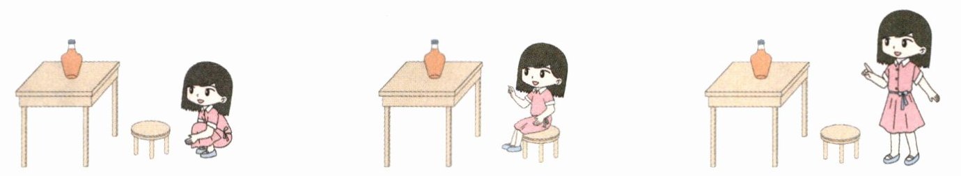 2. 朵朵按照顺序观察桌上的瓶子,如下图。