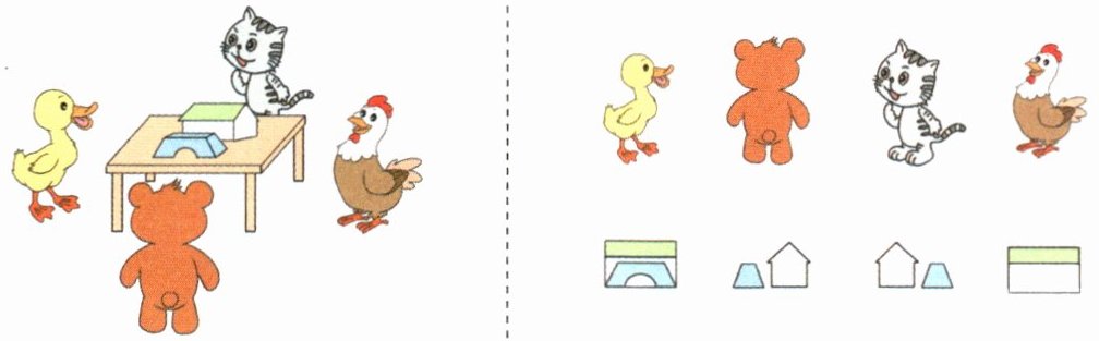 5. 爸爸从窗户看到的情景会是下面右边哪幅图?在括号里画( )