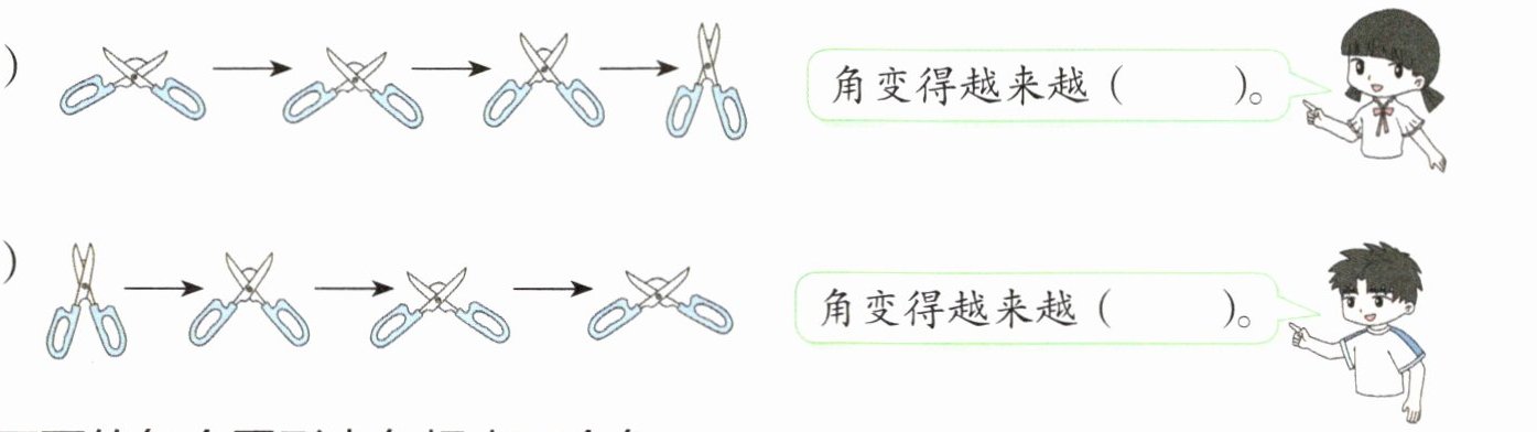 3.(1)→→→ 角变得越来越( )。