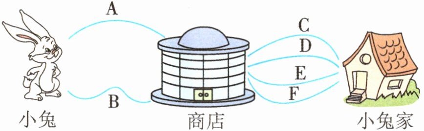 小兔经过商店回到家,一共有( )条路可以走。(接着写一写,画一画)