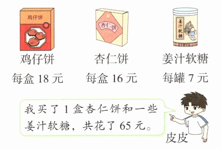 (1)文文买4盒鸡仔饼,需要花多少元?