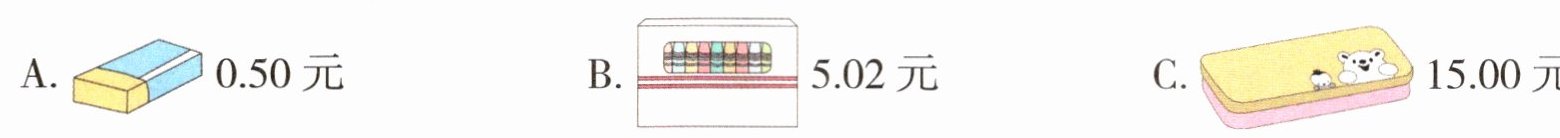 (1)下列文具价格中的“5”表示5角的是( )。