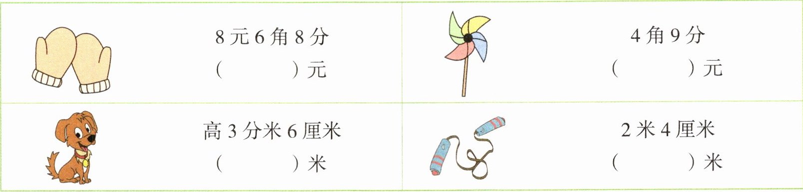 ||8元6角8分|( )元||4角9分|( )元|