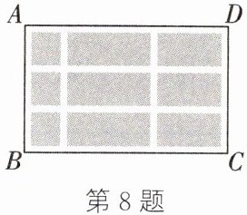 8. (教材P25作业题第3题变式)如图,矩形ABCD是一个月季养植园,AD= 32米,AB= 20米.为了便于养护与运输,养植园内留有四横四纵等宽道路,养植面积与道路面积之比为7:3.