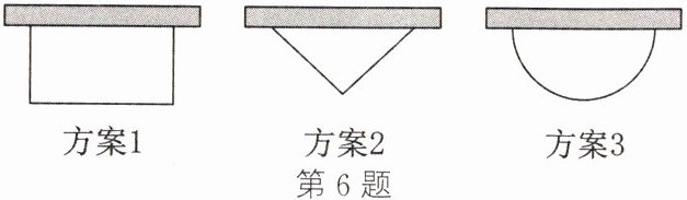 6. (2024·诸暨段考)某班计划在劳动实践基地内种植蔬菜,班长买回来8米长的围栏,准备围成一边靠墙(墙足够长)的菜园,为了让菜园的面积尽可能大,同学们提出了围成如图所示的矩形、等腰三角形(底边靠墙)、半圆形这三种方案,最佳方案是(