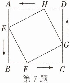 7. 如图,在边长为6 cm的正方形ABCD中,点E,F,G,H分别从点A,B,C,D同时出发,均以1 cm/s的速度分别向点B,C,D,A匀速运动,当点E到达点B时,四个点同时停止运动.在运动过程中,当运动时间为