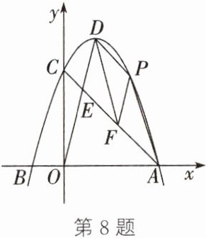 ∴S四边形DPAF=S△APF+S△DPF=S△APF+S△EPF=S△APE.设P(m,−m²+2m+3),1<m<3,则ON=m,PN=−m²+2m+3.设直线AC对应的函数表达式为y=kx+n,把A(3,0),C(0,3)代入,得$\begin{cases}n = 3 \\ 3k + n = 0\end{cases}$,解得$\begin{cases}k = -1 \\ n = 3\end{cases}$.