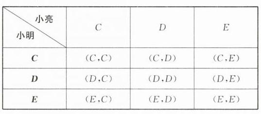 (2)小明和小亮在C,D,E三个景区中,各自随机选择1个景区,请用画树状图或列表的方法,求小明和小亮选到相同景区的概率.