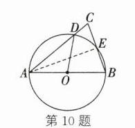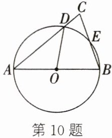 10. (2024·舟山定海段考)如图,在△ABC中,AB= AC,以AB为直径的⊙O分别交AC,BC于点D,E,连结OD.