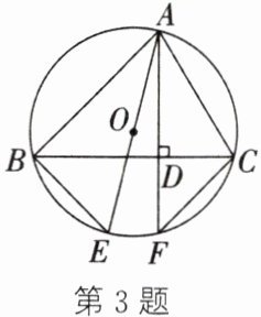 3. 如图,在$\odot O$中,AF,BC是$\odot O$的弦,$AF\perp BC$,垂足为D,E是$\overset{\frown}{BF}$上一点,且$BE= CF$,连结AB,AC,AE.
