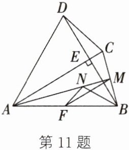 11. 如图,在四边形 ABCD 中,F,M 分别是 AB,BC 的中点,AC⊥BD 于点 E,BN 平分∠ABE,交 AM 于点 N,AB= AC= BD,连结 MF,NF.