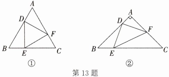 13. 定义:在△ABC 中,D,E,F 分别是边 AB,BC,CA 上的动点,若△DEF∽△ABC,则称△DEF 是△ABC 的“子三角形”.