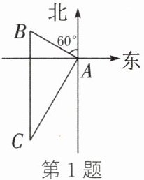 1. 如图,小明从A地沿北偏西60°方向走100 m到达B地,再从B地向正南方向走200 m到达C地,此时小明与A地的距离为 (