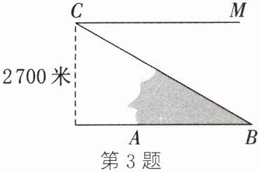 3. (2024·杭州钱塘段考)如图,为确定某隧道AB的长度,测量人员在离地面2700米高度的飞机上(点C处),测得正前方点A处的俯角为60°,BC的坡比为$1:\sqrt{3}$,则隧道AB的长为