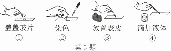 5. (教材P49练习与应用T4变式)洋葱被誉为“菜中皇后”,还被称为天然的“心脏支架”,营养价值特别高。小科制作了洋葱鳞片叶内表皮细胞的临时装片,并利用显微镜进行观察。