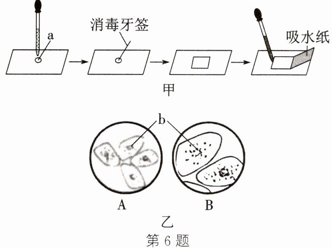 6. 下图是某校学生制作人口腔上皮细胞临时装片并观察的实验。