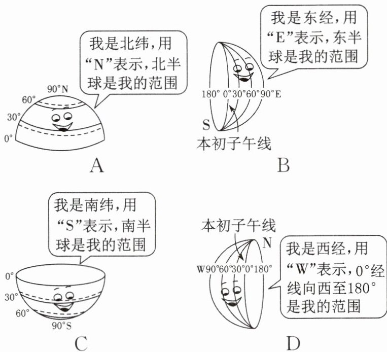2. 学完了经纬线和经纬度,你对它们很熟悉了吧!请你听一听它们的自我介绍,撒谎的是 (