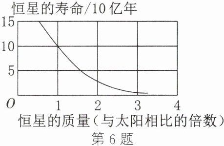 6.(教材P126探索活动改编)(2024·杭州临平期末)恒星的寿命是指恒星从形成到灭亡所经历的时间,这取决于多种因素,质量是影响寿命的主要因素。结合图表信息,推测四种恒星中寿命最长的是