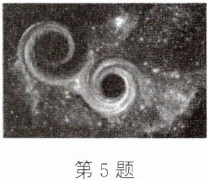 5. 宇宙中的天体都经历诞生、成长、成熟到衰老、死亡的演化过程。如图是ZS7星系黑洞合并的模拟照片,在演化的最后阶段可能变成黑洞的天体是 (