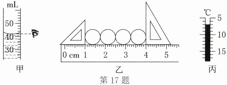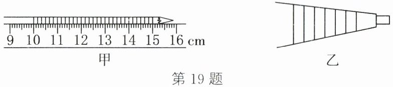 19. 将粗细均匀的金属丝笔杆上密绕30圈,如图甲所示,线圈总长度是