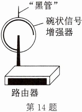 14. 路由器是一种无线上网设备,信号由一根"黑管"向各处发射。小科对路由器的信号增强器进行了如下探究: