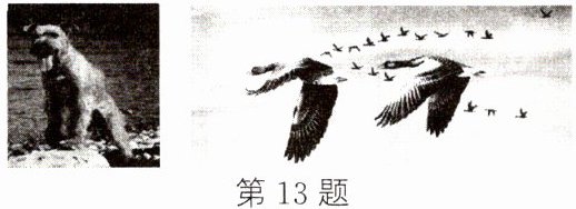 13. 生活中有许多有趣的自然现象,如狗吐舌头、大雁南飞等,如图所示。请你用科学的道理来解释一下图中的现象。