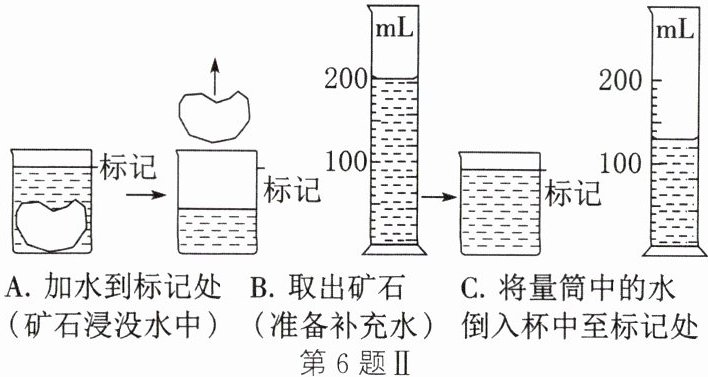 (3)另有一较大矿石,放不进量筒,因此乙同学利用一只烧杯,按图Ⅱ所示方法来测量矿石的体积。此测量方法测得矿石的体积与它的真实值相比
