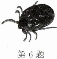 6. 如图所示,蜱虫俗称壁虱,可传播多种疾病。虫体椭圆形,分颚体和躯体两部分,成虫在躯体背面有壳质化较强的盾板,腹面有足4对,每足6节。蜱虫应该属于(